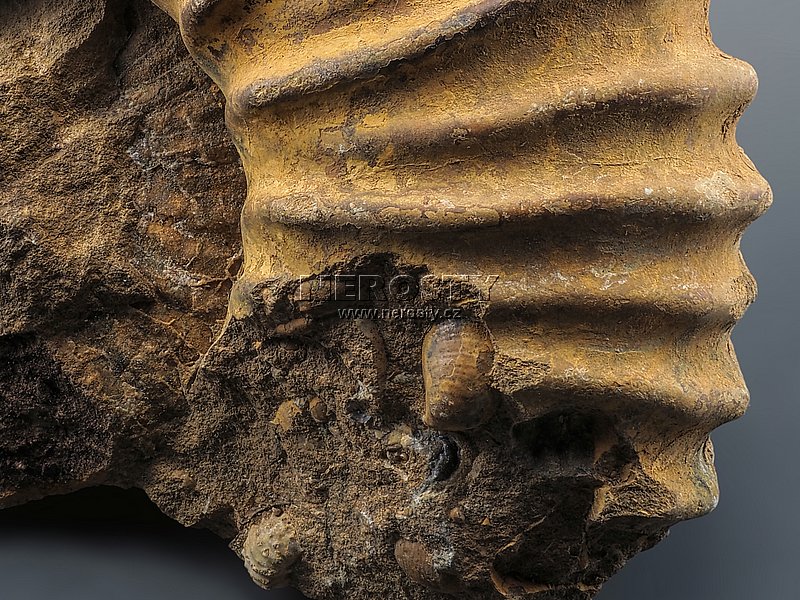 amonit, perisphinctes sp., #17062:7800 Objednáváte konkrétní vyfotografovaný kus. Při objednání obdržíte přesně to, co vidíte na obrázku. Vzorek si můžete osobně prohlédnout v naší prodejní galerii. | |